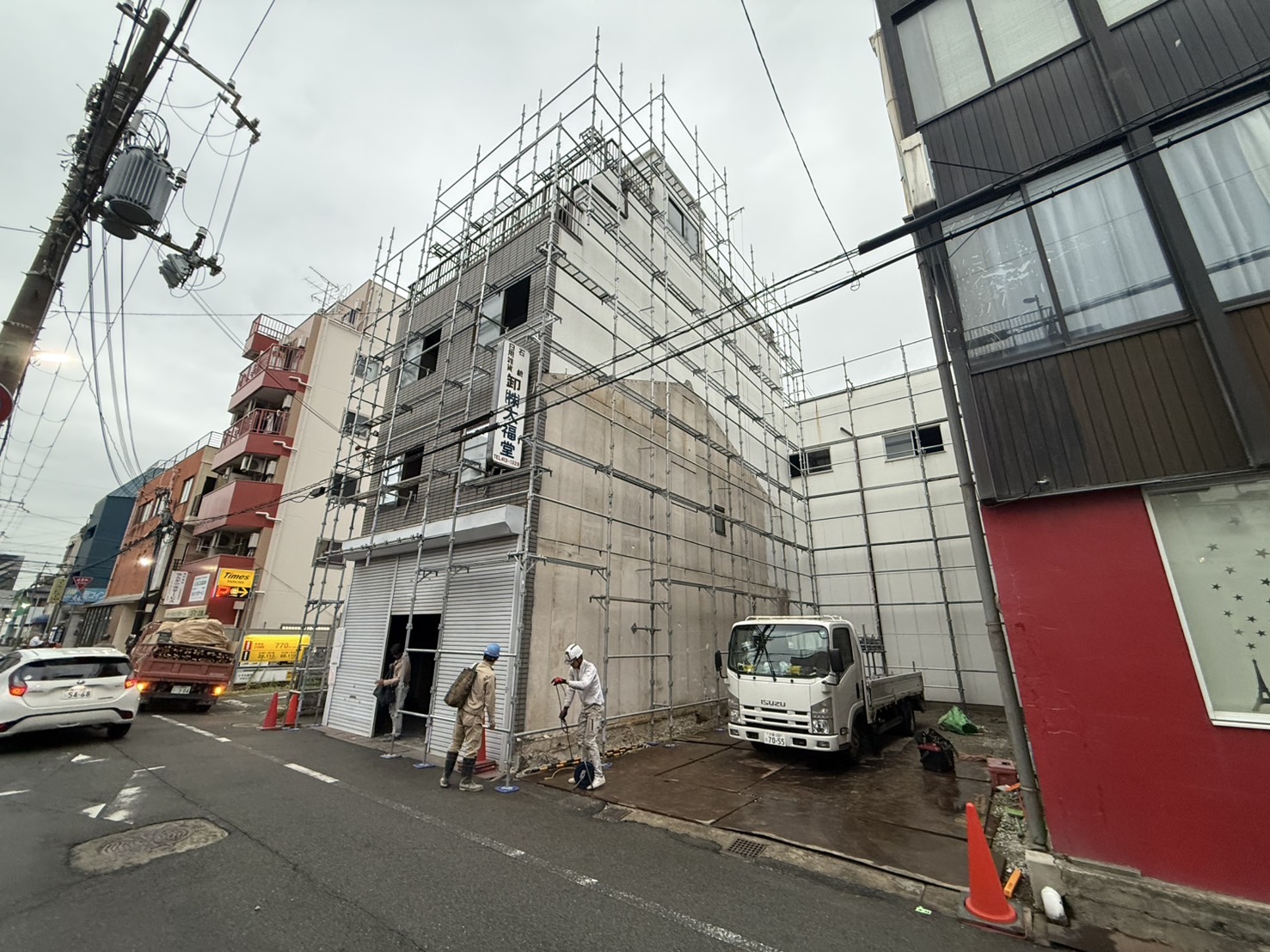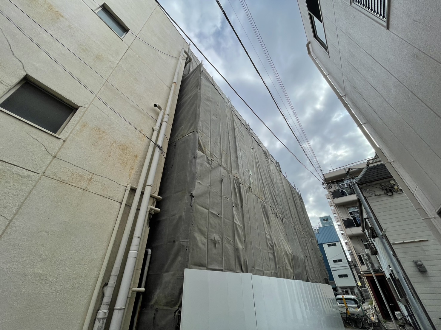 今回は、兵庫県尼崎市で実施した 解体工事に伴う足場組立工事 の様子をご紹介します。