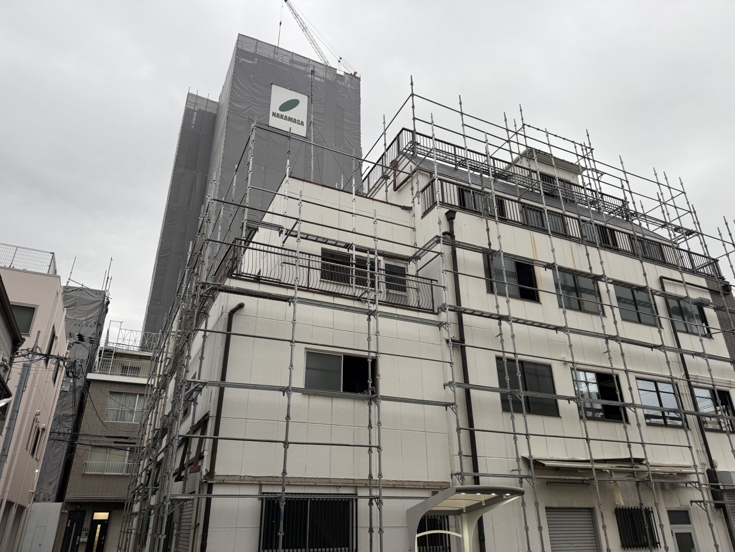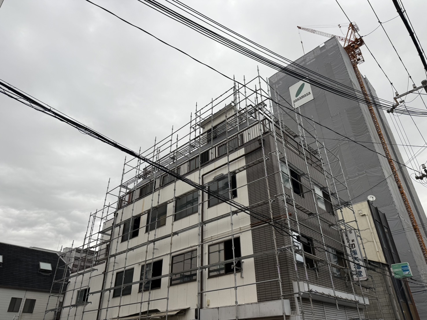 🏗️【施工事例】尼崎市|解体用足場の組立工事を行いました!